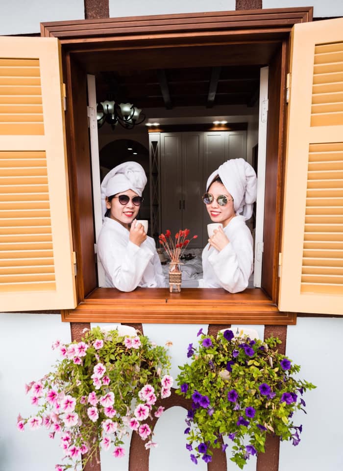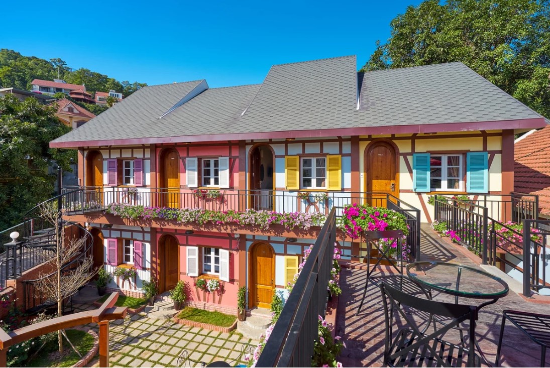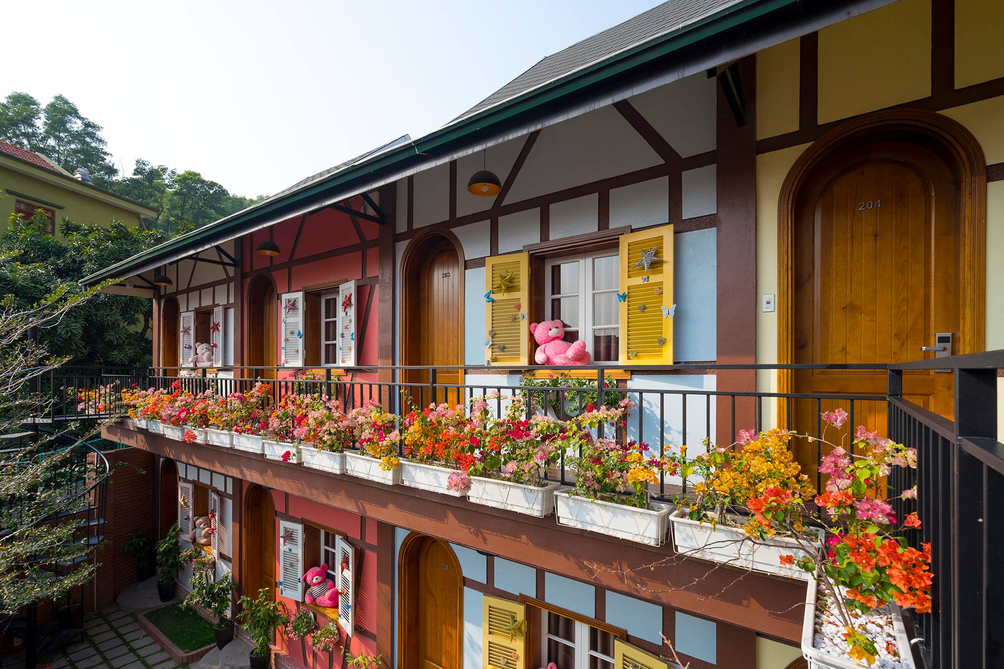 Chưa hết, vẻ đẹp hút hồn của Little Colmar còn đến từ giàn hoa nhỏ được đặt trước ban công mỗi phòng. Vào mùa hoa nở, cả không gian như bừng lên sắc xuân tràn đầy sức sống. Mang đến view cực xịn cho du khách tha hồ check in sống ảo.