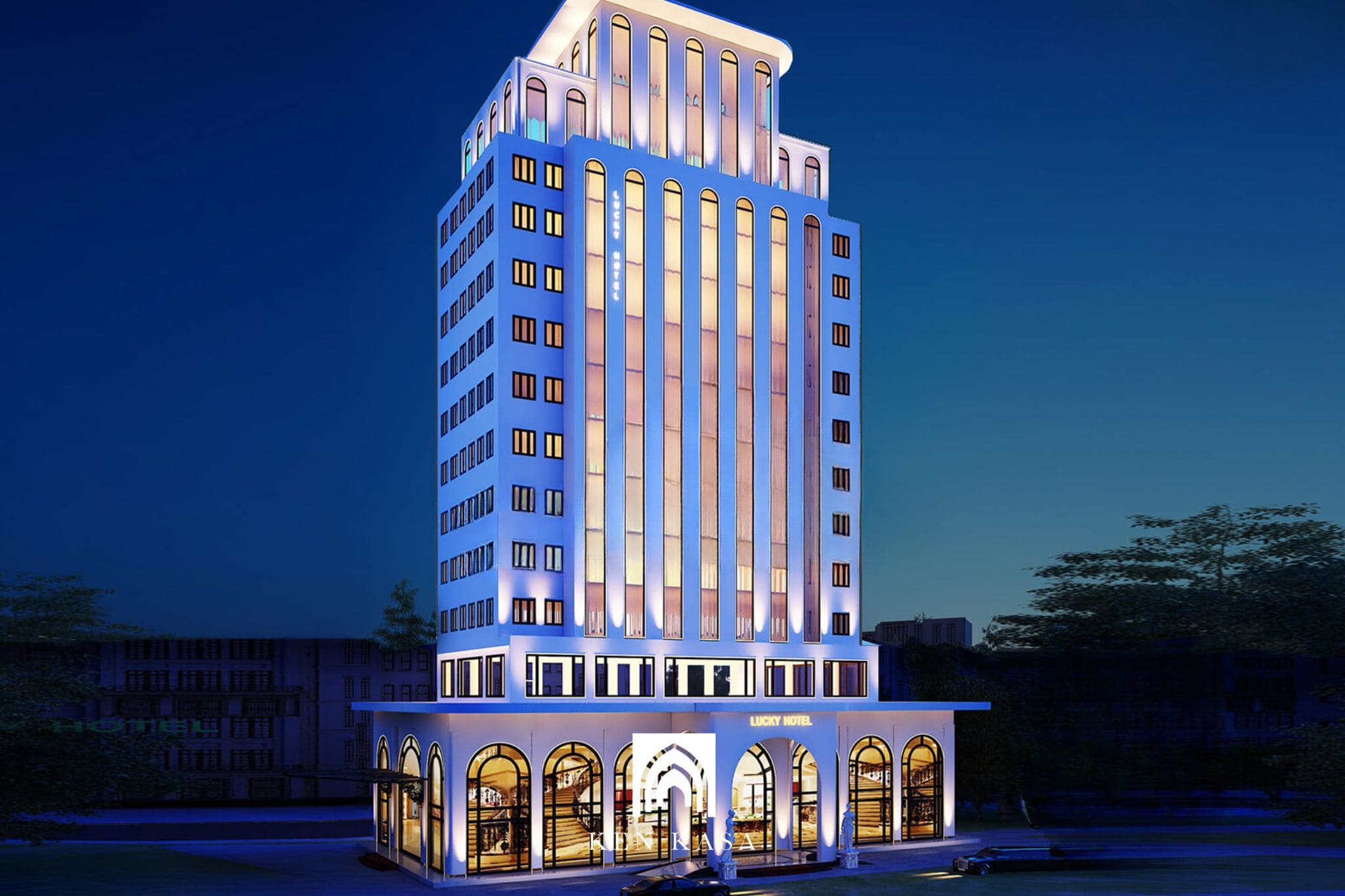 Trong ngành lưu trú cạnh tranh ngày càng khốc liệt, mặt tiền khách sạn hiện đại trở thành yếu tố quan trọng để tạo ấn tượng mạnh mẽ và thu hút khách ngay từ cái nhìn đầu tiên. Một thiết kế mặt tiền chỉn chu không chỉ phản ánh đẳng cấp thương hiệu mà còn thể hiện sự đầu tư nghiêm túc của chủ đầu tư vào trải nghiệm khách hàng. Đây cũng là “vũ khí” giúp khách sạn tăng khả năng nhận diện giữa hàng loạt công trình trong cùng khu vực. Với kinh nghiệm triển khai nhiều dự án thực tế, KenKasa mang đến góc nhìn chuyên sâu giúp chủ đầu tư hiểu rõ giá trị của một mặt tiền được thiết kế đúng chuẩn xu hướng.
