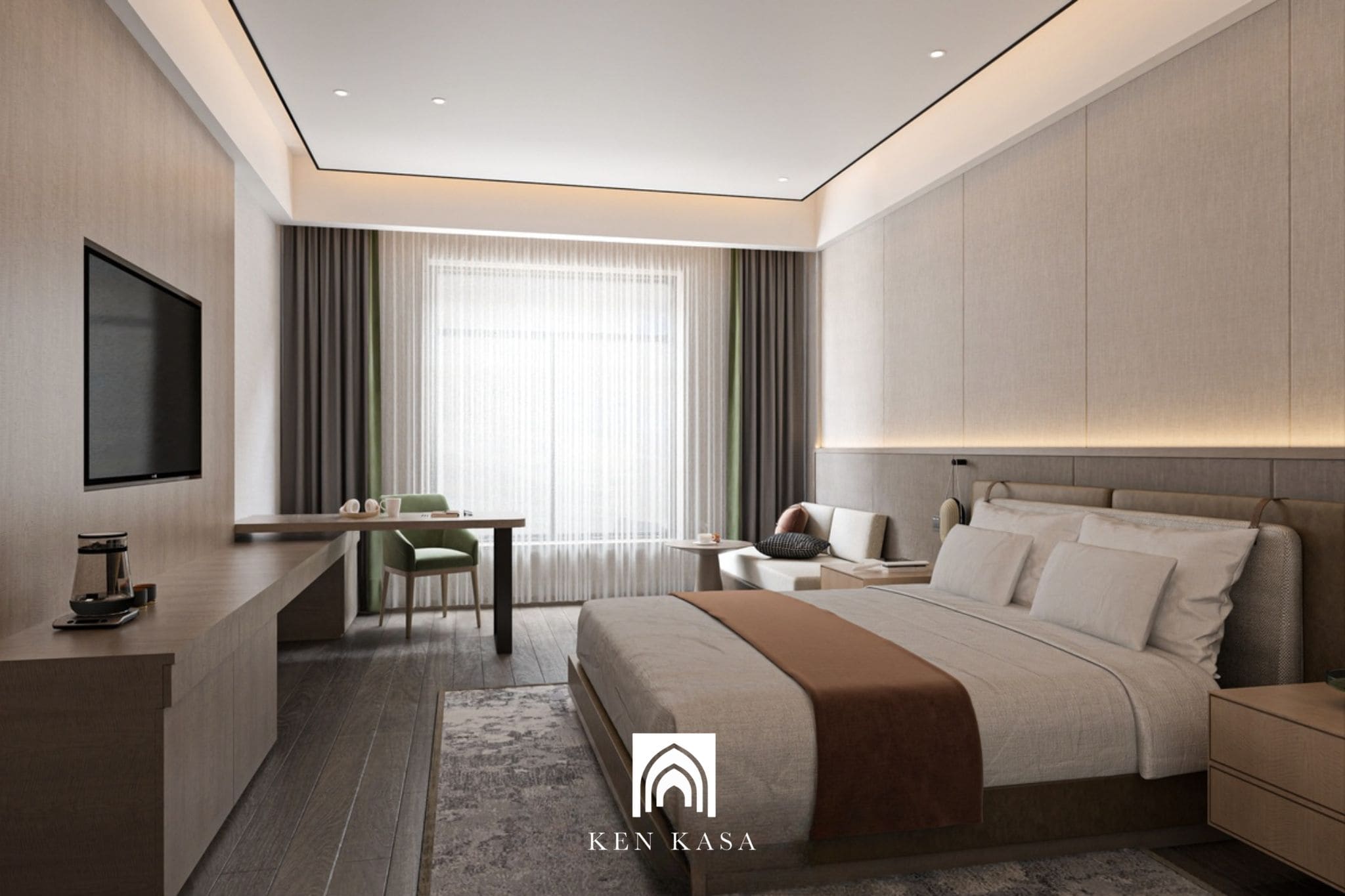 - Tư vấn vật liệu & nội thất cao cấp: KenKasa chọn lựa vật liệu bền đẹp, dễ bảo trì, phù hợp phong cách hiện đại và tiêu chuẩn khách sạn.