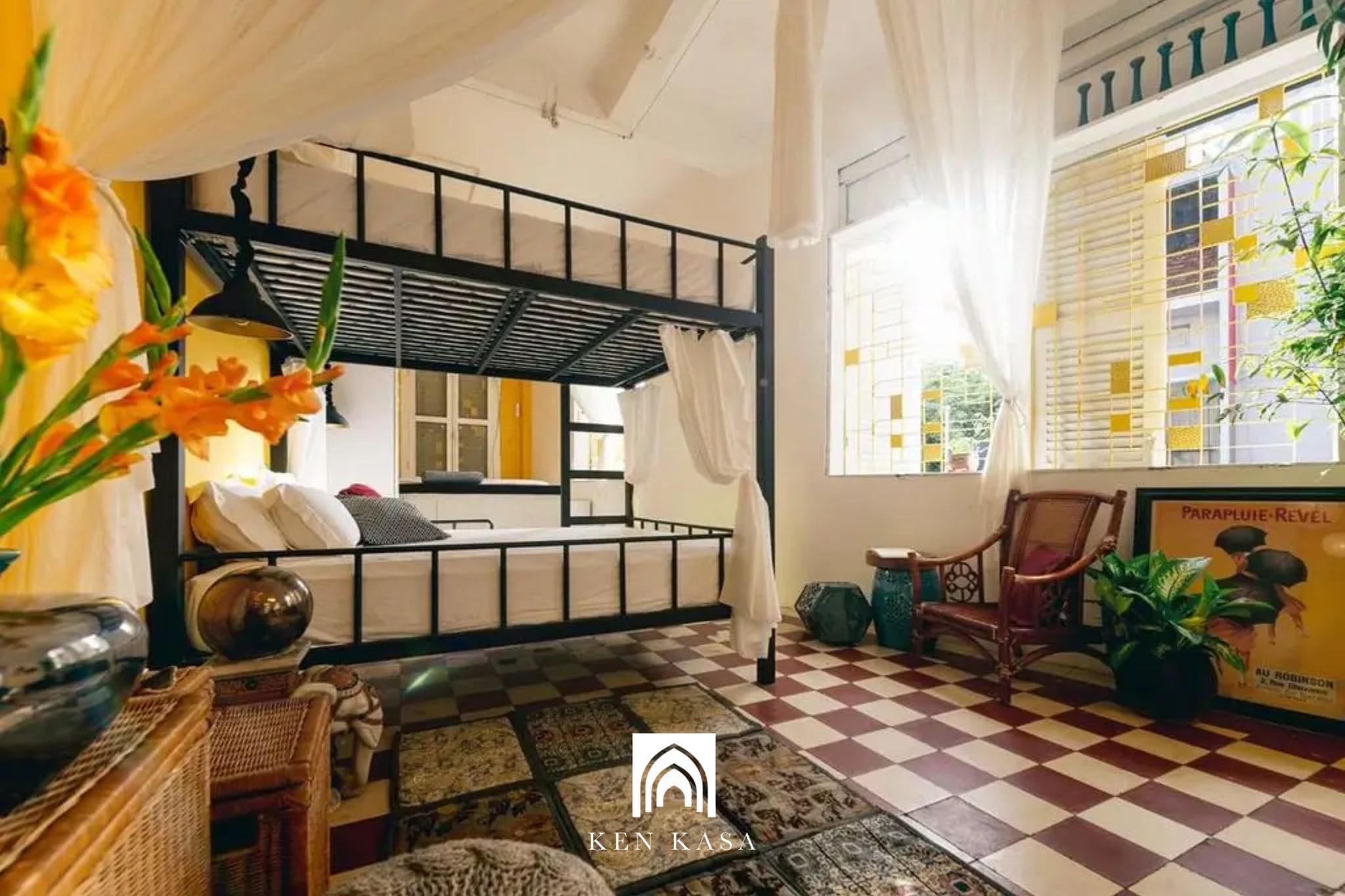 Phong cách Indochine là sự kết hợp hài hòa giữa nét đẹp Á Đông và tinh thần cổ điển phương Tây. Trong các thiết kế homestay nhà ống 2026, phong cách này được thể hiện qua gạch bông, họa tiết đặc trưng Đông Dương, nội thất gỗ tối màu và ánh sáng vàng ấm. Kiểu thiết kế này mang lại vẻ sang trọng, sâu lắng và rất phù hợp với các homestay muốn thể hiện giá trị văn hóa Việt.